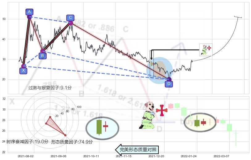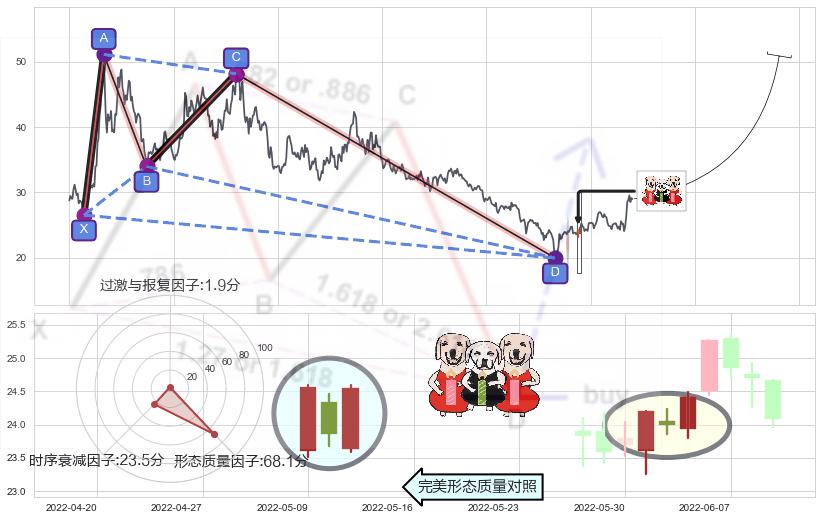 ➢ 曙光初现形态 🔜 谐波蝴蝶d拐点上涨支撑 综合量化分数:55.56 【偏多】