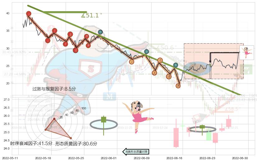 从2021-07-30至2022-05-20,共包含193个交易日,阶段股价下跌-41.44%,阶段股价变动位移路程比: 1 : 7,下跌趋势角度: 51.1