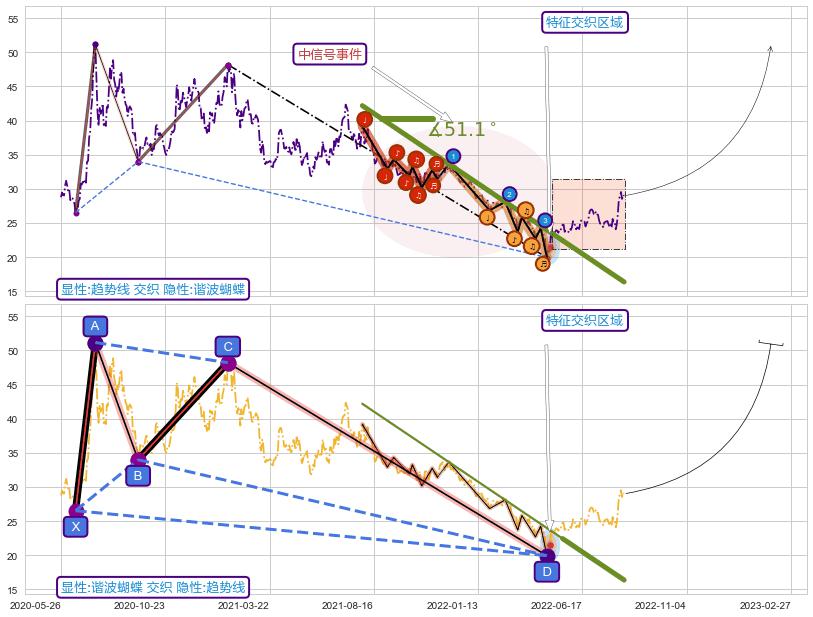 ➣ 未完成【蝴蝶】形态起点X: 2022-02-23, 已到达C点: 2022-08-02, 预测最终D点: 2022-09-20, 共141交易日