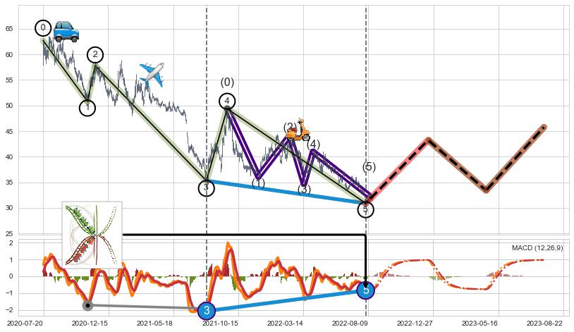 ➣ 波浪理论:猜想止跌 → 上涨 →【拐点】浪5已完成 → 大趋势均值回复