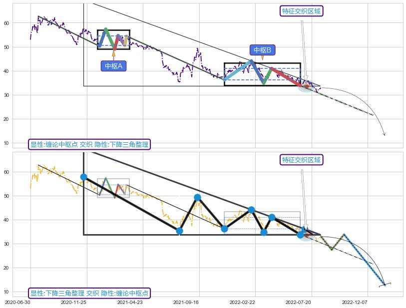 ➢ 缠论中枢点与下降三角整理信号事件周期长度级别相同,同周期信号事件