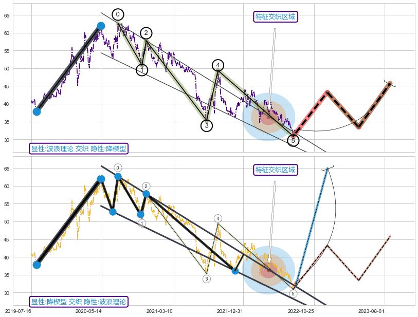 ➢ 波浪理论与降楔型信号事件周期长度级别相同,同周期信号事件