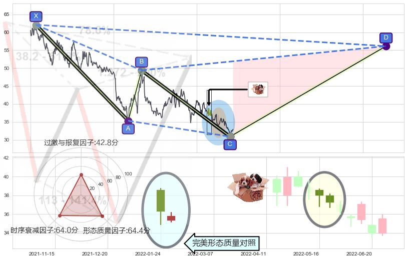 ➢ 曙光初现形态 🔜 谐波赛福下沉击穿c上涨拐点 综合量化分数:50.54 【中性】
