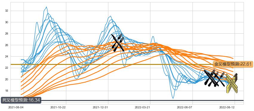 ➣ 120小时均线于(2022-01-19: 26.04)形成【死叉】基于【死叉历史模型】预测死叉后最低波谷价格: 22.91, 死叉后最低价格16.00,已经下跌超出预测最低波谷价格, 预期反弹