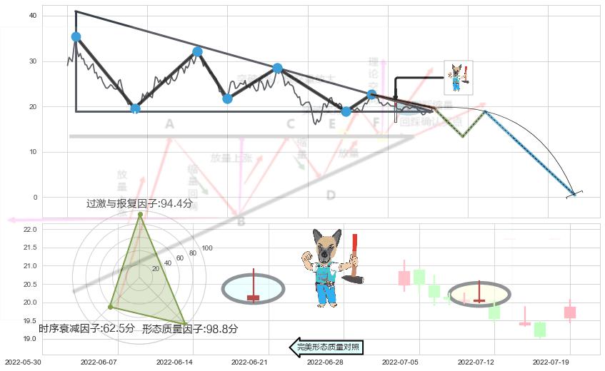 ➢ AI智能: 预测【多空防线逐步靠近→双方接火→空方占优】下降三角形中继整理向下突破,预测将在2022-08-02突破颈线, 演变成下降通道