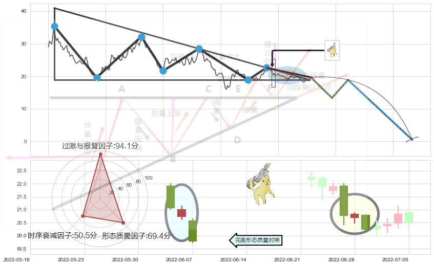 ➣ 【未确认突破,预测即将形成突破】下降三角形整理起点:2021-09-07, 预测突破点:2022-08-02,形态共217交易日