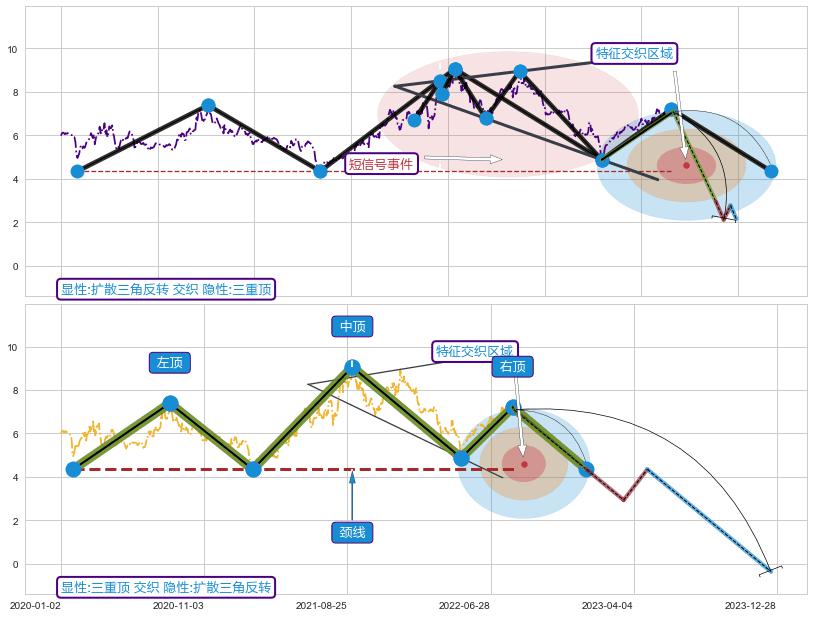 ➢ 扩散三角反转属【短级别信号事件】三重顶属【长级别信号事件】长短周期组合信号事件, 短长事件长度比31.60%