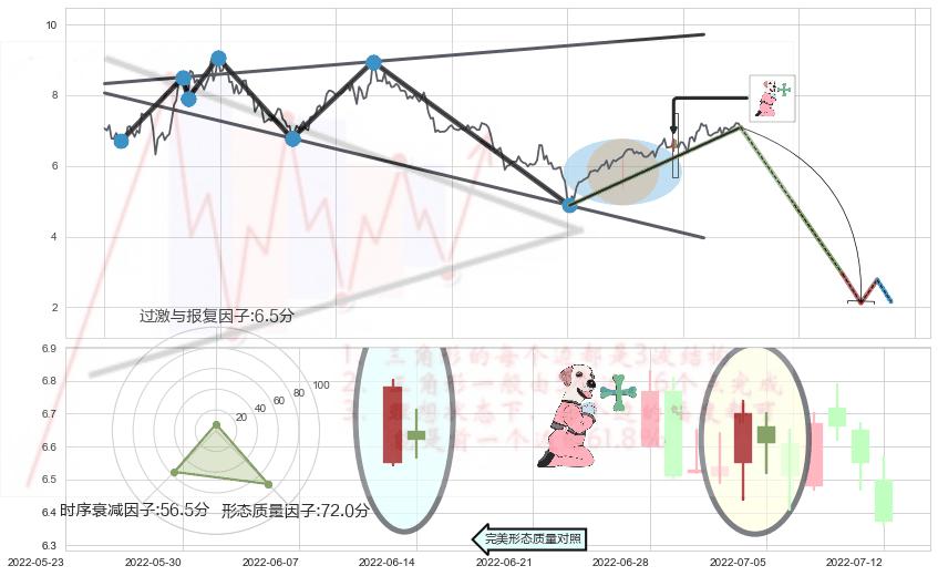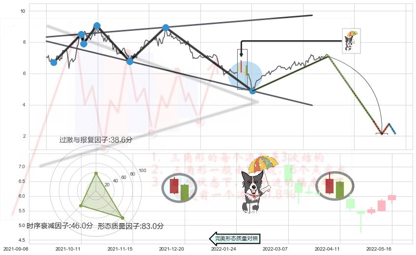 ➢ 黄昏之星(夜星) 🔜 扩散三角反转临近支撑猜想转换阻力下跌 综合量化分数:46.38 【中性】