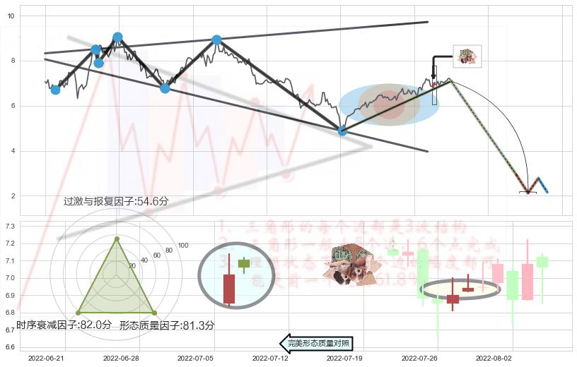 ➢ 🕰 价格走势在2022-07-27至2022-07-28期间形成顶部尽头线(下山虎),残存影响值:-4.36