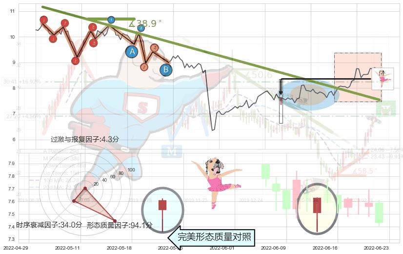 ➣ 2022-01-04-2022-05-10下跌趋势存在反转上涨[机会],其原下跌趋势的阻力位(7.55)已被突破[强支撑信号],原下跌趋势角度: 38.9˚