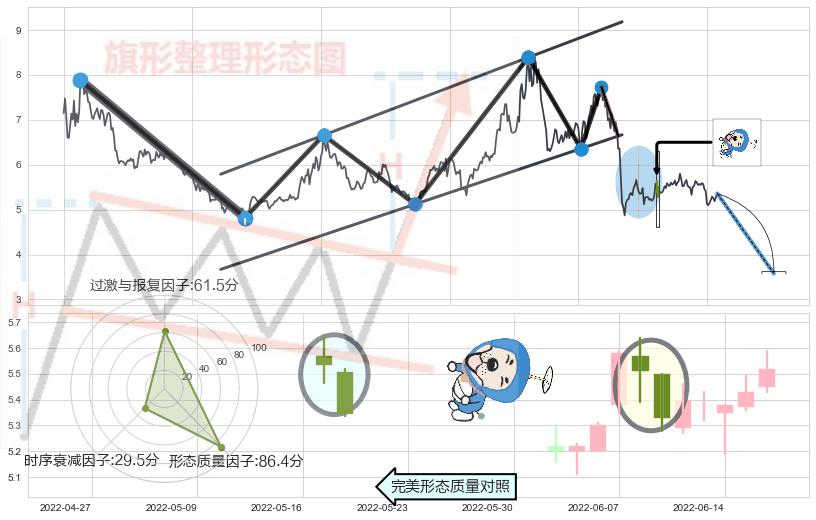 ➢ 【卖1】: 激进型 卖点→(2022-04-21: 6.64 )形成突破升⚑旗形【整理】形态