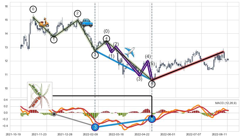 ➣ 波浪理论:猜想达到c点后小反弹终止反转下跌 → 下跌 → 【拐点】临近 → 阶段均值回复结束后继续大周期趋势跟踪
