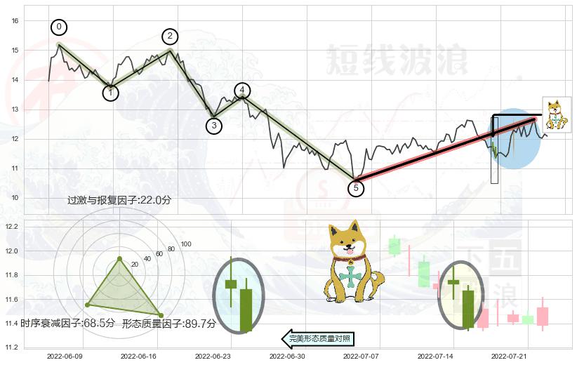 ➢ 🕰 价格走势在2022-07-13至2022-07-13期间形成下降插入线(坠落线),残存影响值:-2.70