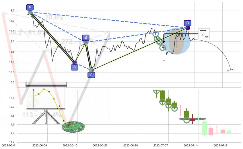 ➣ 谐波赛福:已到达d点:猜想c拉升到达d点后泄力性下沉下跌(均值回复)