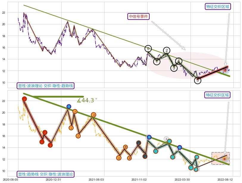 ➢ 2020-08-24-2022-06-29下跌趋势存在反转上涨[机会],虽然原下跌趋势的阻力位(11.05)已被突破,但其阻力效果尚存,原下跌趋势角度: 44.3˚