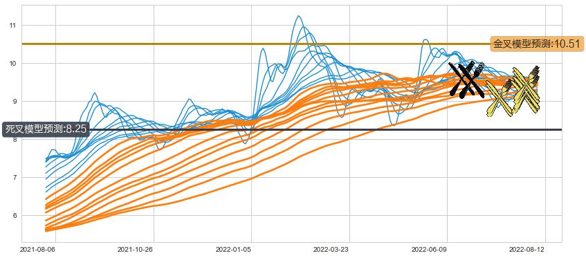 ➣ 80小时均线于(2022-06-27: 9.51)形成【死叉】基于【死叉历史模型】预测死叉后最低波谷价格: 8.40, 死叉后最低价格8.78,尚未达到预测最低波谷价格, 预期继续下跌