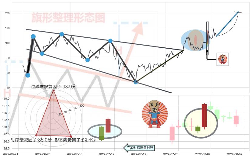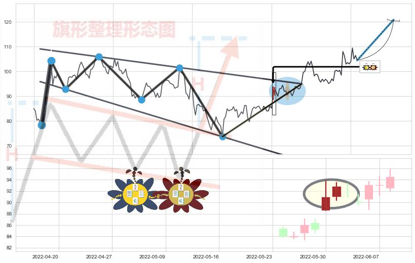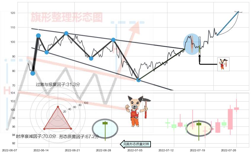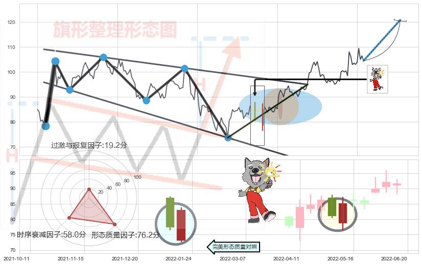 ➢ 【买1】: 激进型 买点 →(2022-06-24: 95.00 )形成突破降⚑旗形【整理】形态