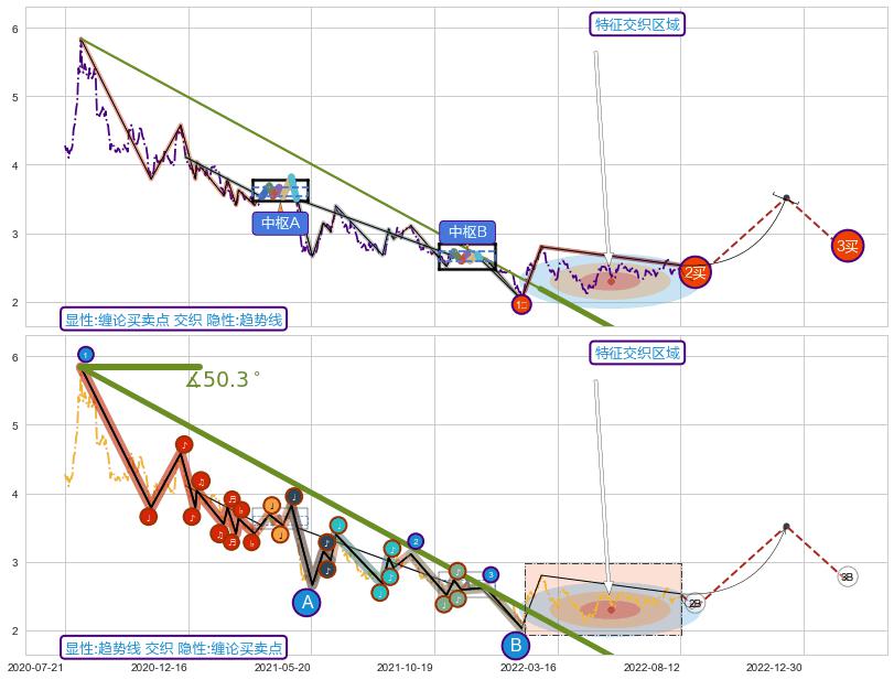 ➣ 缠论买卖点:下降缠:猜想2买趋势延续,蓄力上涨至3买(大周期趋势均值回复中的小周期趋势跟踪)