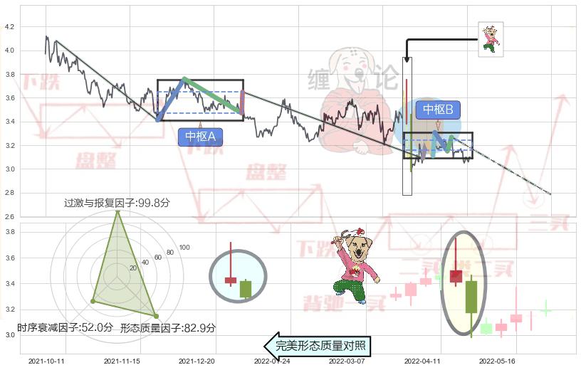➢ 下跌身怀六甲 🔜 缠论中枢点破位中枢B支撑下拉 综合量化分数:44.37 【偏空】