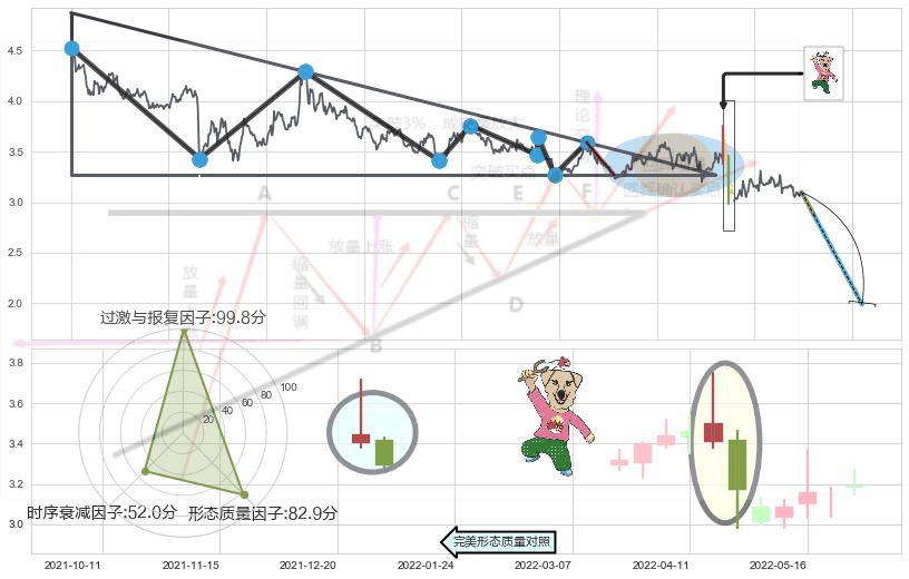 ➢ 【多方力量耗尽,空方打破攻守平衡点】下降三角形中继整理, 已在2021-11-01突破【支撑】颈线 3.270 →演变成下降通道
