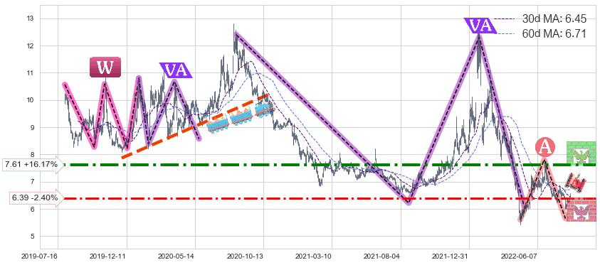 ♘ 阻力价格位7.61,可信任强度72.50%,距离最后交易2022-08-12形成的收盘价格6.55相差 +16.17%
