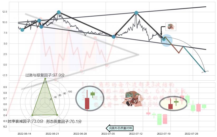 ➢ 🕰 价格走势在2022-07-19至2022-07-20期间形成顶部尽头线(下山虎),残存影响值:-4.85