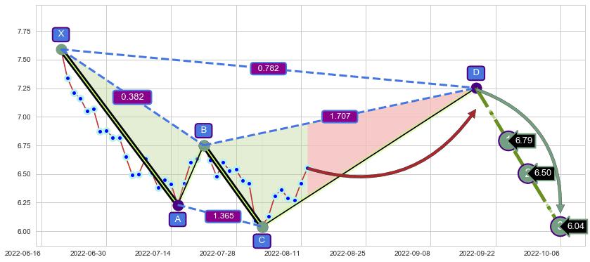 ➣ 未完成【赛福】形态起点X: 2022-06-21, 已到达C点: 2022-08-03, 预测最终D点: 2022-09-19, 共65交易日