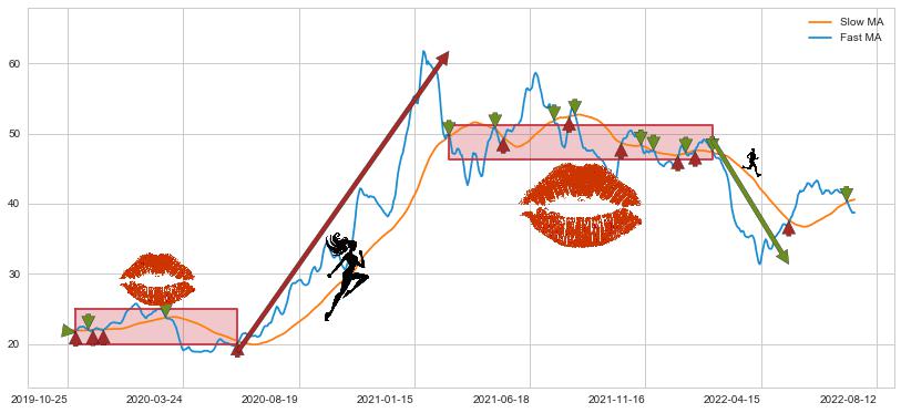 2022-02-14至2022-05-24 慢线与快线呈空头排列, 慢线与快线接触少,无缠绕