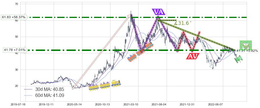 ♘ 阻力价格位41.78,可信任强度85.19%,距离最后交易2022-08-12形成的收盘价格39.04相差 +7.01%