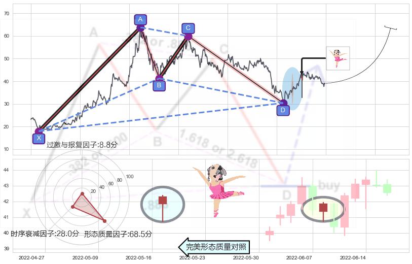 ➢ 曙光初现形态 🔜 谐波蝙蝠d拐点上涨支撑 综合量化分数:55.30 【偏多】