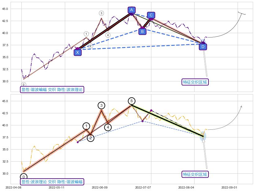 ➢ 谐波蝙蝠与波浪理论信号事件周期长度级别相同,同周期信号事件