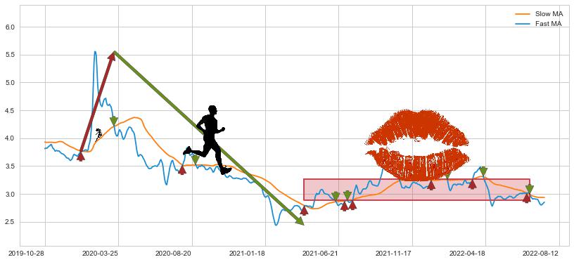 2021-04-09至2022-07-15 慢线与快线多次接触,存在上下穿越,有缠绕