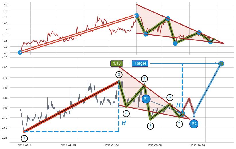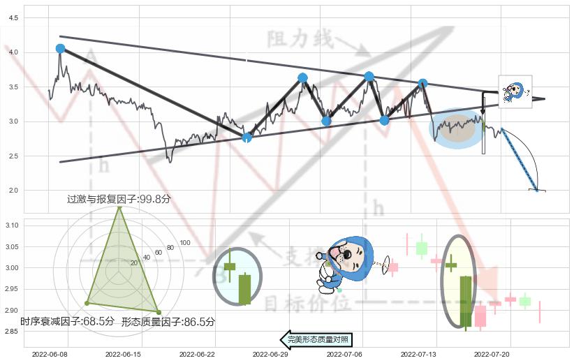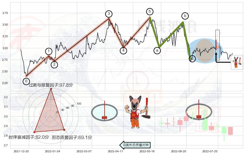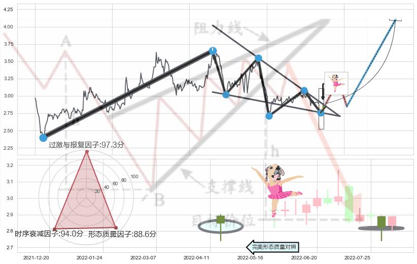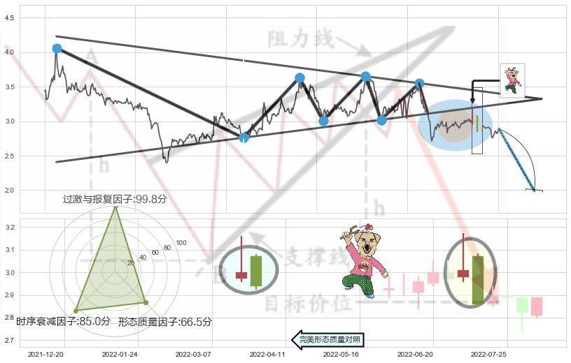 ➢ 【买1】: 激进型 买点 →(2022-08-12: 2.849 )形成突破降🚩楔型【整理】形态