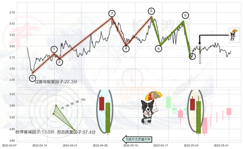 ➢ 🕰 价格走势在2022-04-25至2022-05-09期间形成上涨镊子线(U形磁铁),残存影响值:3.45