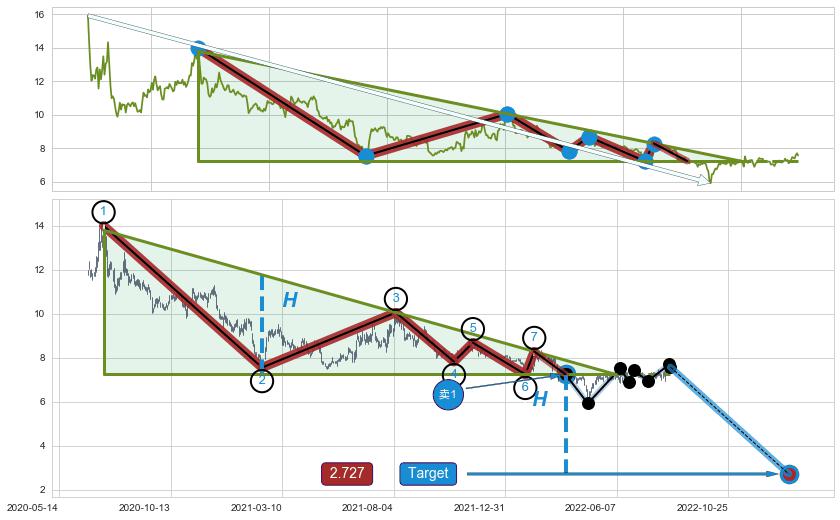 ➣ AI预测: 假定反转启动后, 第❸目标位置(2023-02-08, 7.71)