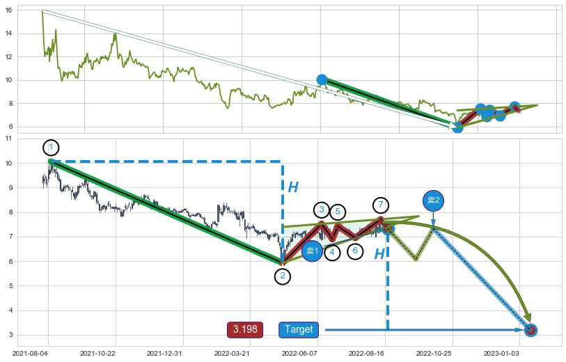 ➢ AI预测: 假定反转启动后, 第❷目标位置(2023-01-20, 7.18)
