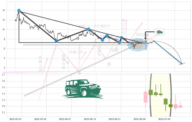 ➣ D点拟合预测价格6.32,距离最后交易收盘价格7.58相差 -16.65%