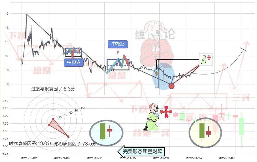➣ 缠论买卖点:下降缠中枢AB形成后猜想拐点1买已到达,猜想后续持续拉升(均值回复)