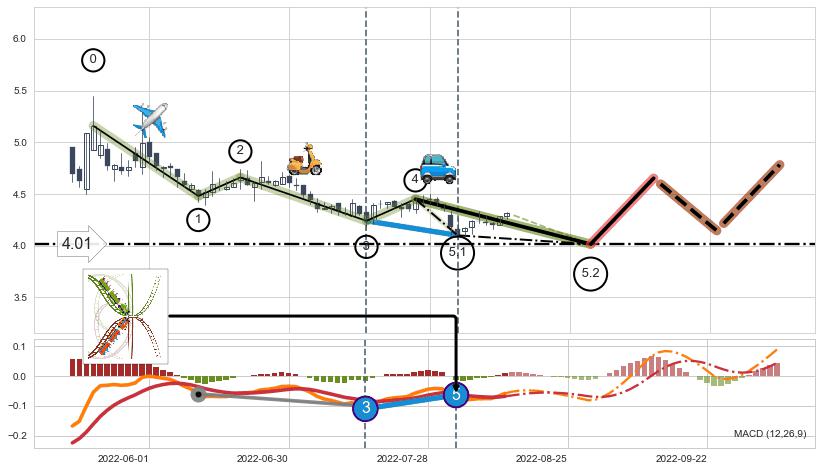 ➣ 5.1: 预测当前第5浪位置(2022-08-03, 4.10),仍然有下跌空间