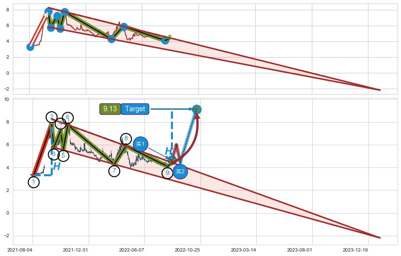 ➣ 【仅预测突破】最后价格:4.32与预测突破价格:4.64→【空间临近】后续最小【整理】第一目标价格→(2022-10-14: 9.13 )