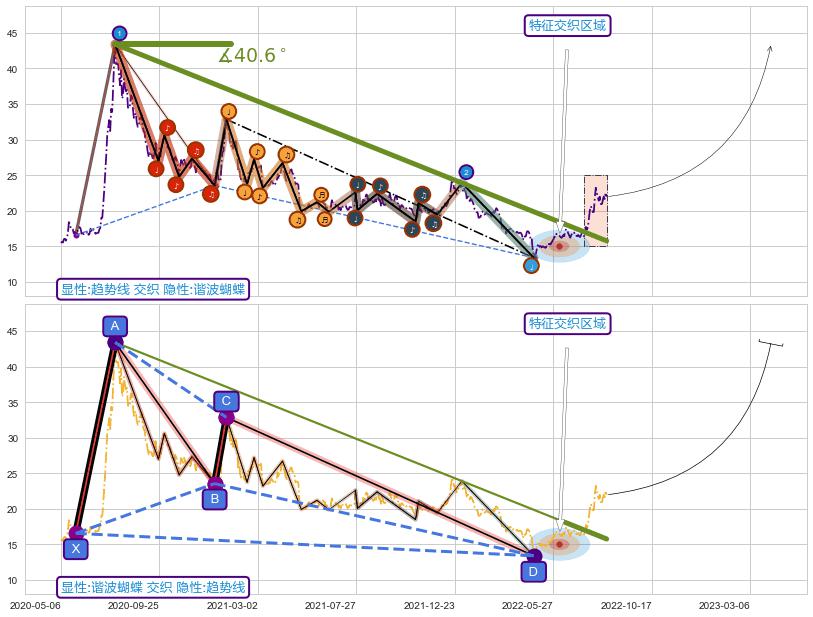 ➢ 趋势线与谐波蝴蝶信号事件周期长度级别相同,同周期信号事件