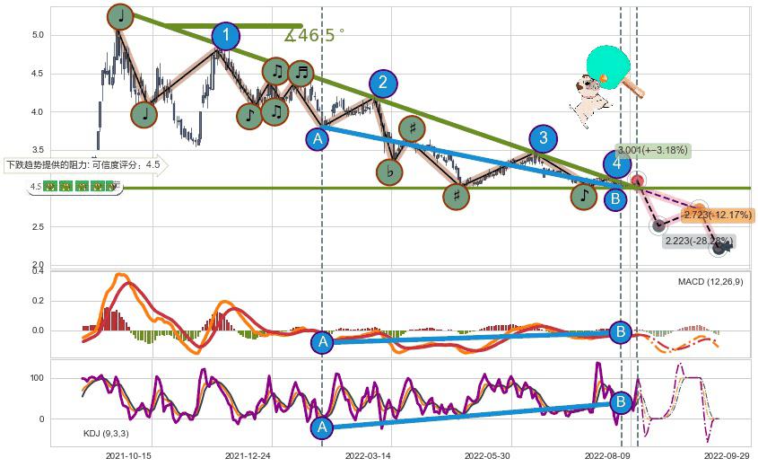 ➣ 预测:2022-09-19,【试探阻力】稳定目前下跌趋势的前提下,预测价格:2.723