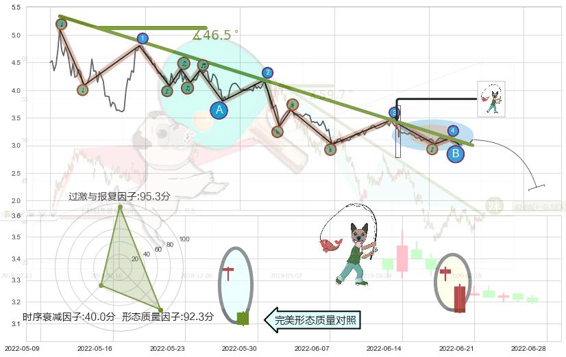 ➢ 🕰 价格走势在2022-06-17至2022-06-20期间形成吊颈线(上吊线),残存影响值:-3.54