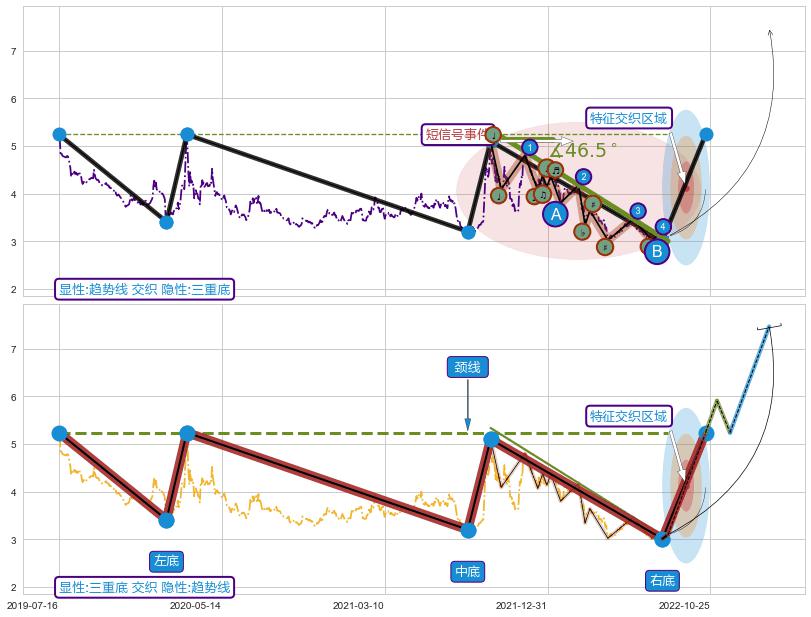➢ 趋势线属【短级别信号事件】三重底属【长级别信号事件】长短周期组合信号事件, 短长事件长度比28.97%
