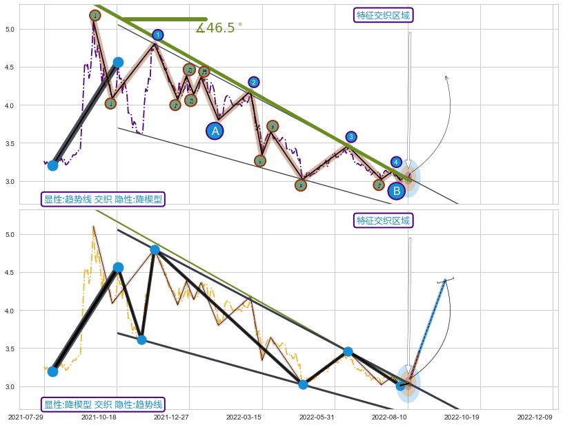 ➢ 趋势线与降楔型信号事件周期长度级别相同,同周期信号事件