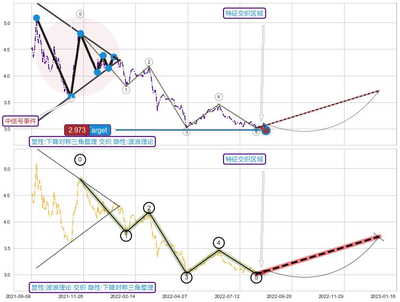 ➢ 【卖1】: 激进型 卖点→(2022-01-14: 4.29 )形成突破下降【对称】三角形整理【整理】形态