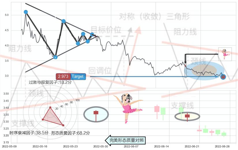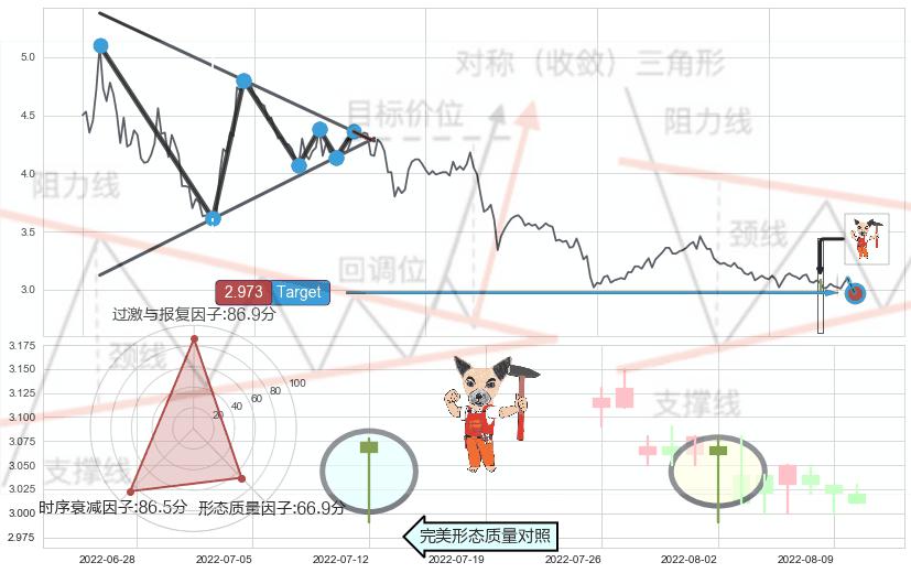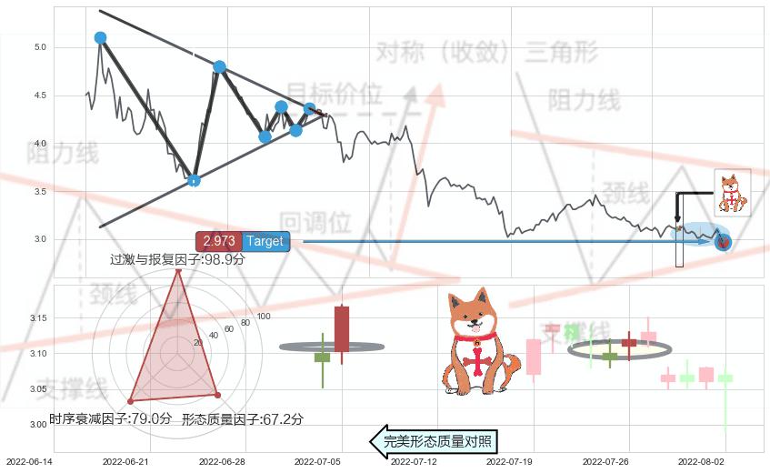 ➢ 锤头线(锤子线) 🔜 下降对称三角整理临近target支撑拐点上涨 综合量化分数:56.52 【偏多】