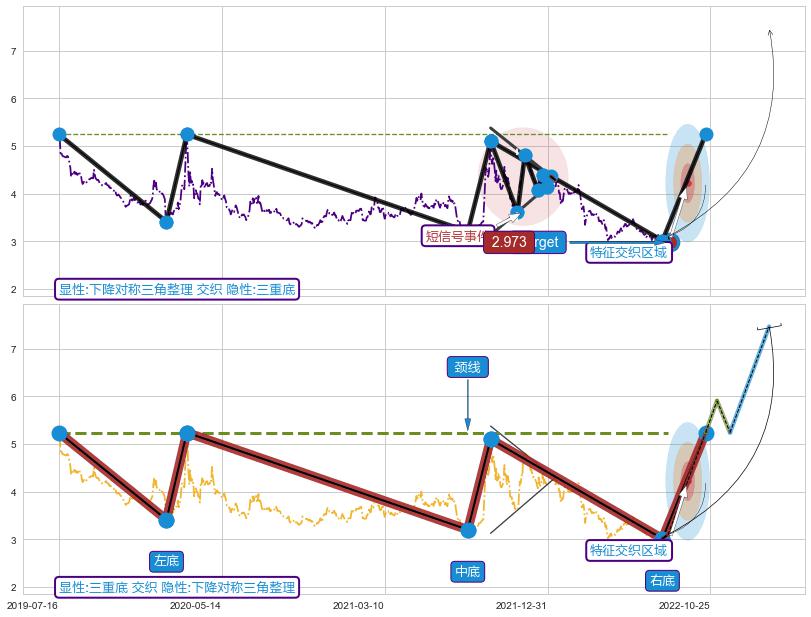 ➢ 下降对称三角整理属【短级别信号事件】三重底属【长级别信号事件】长短周期组合信号事件, 短长事件长度比10.68%
