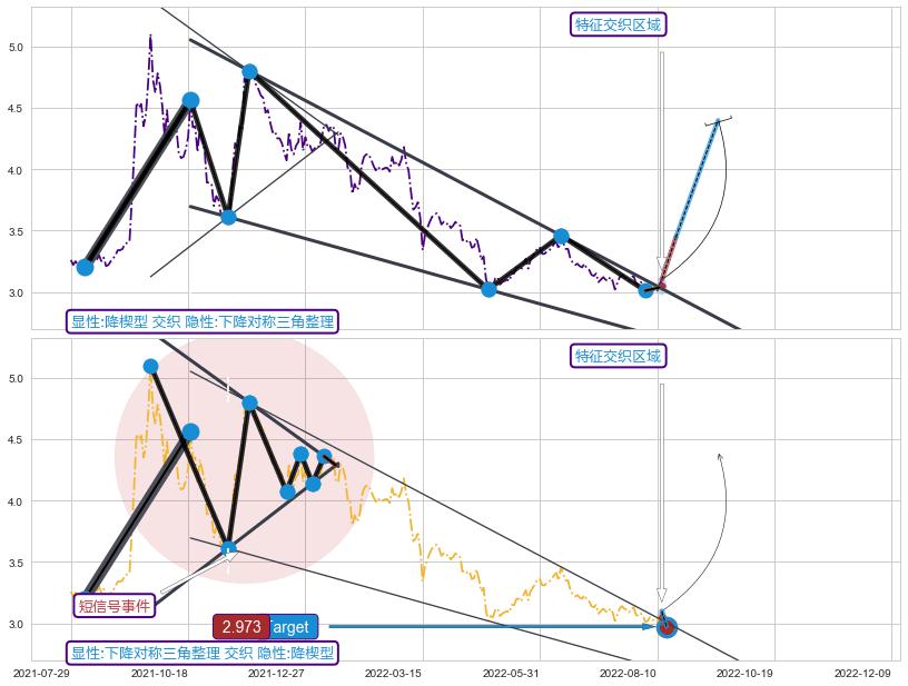 ➢ 【买1】: 激进型 买点 →(2022-08-11: 3.037 )形成突破降🚩楔型【整理】形态