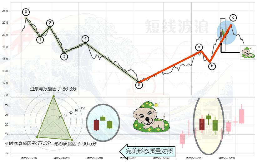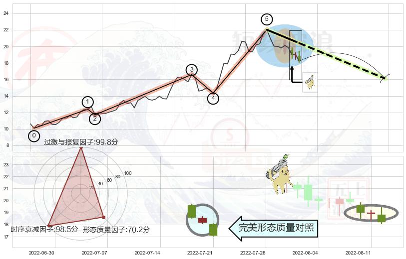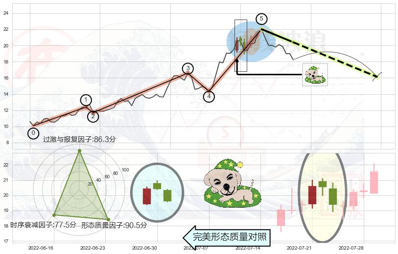 ➣ 射击之星形态 + 波浪理论上涨浪:浪5回调拐点信号叠加后【反向回撤率】中等,【看空】信号叠加【存续影响中等】